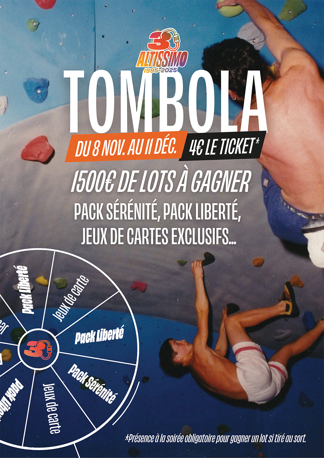 Pour célébrer dignement ses 30 ans, Altissimo vous organise une tombola exceptionnelle avec plus de 1500€ de lots par salle à gagner.
